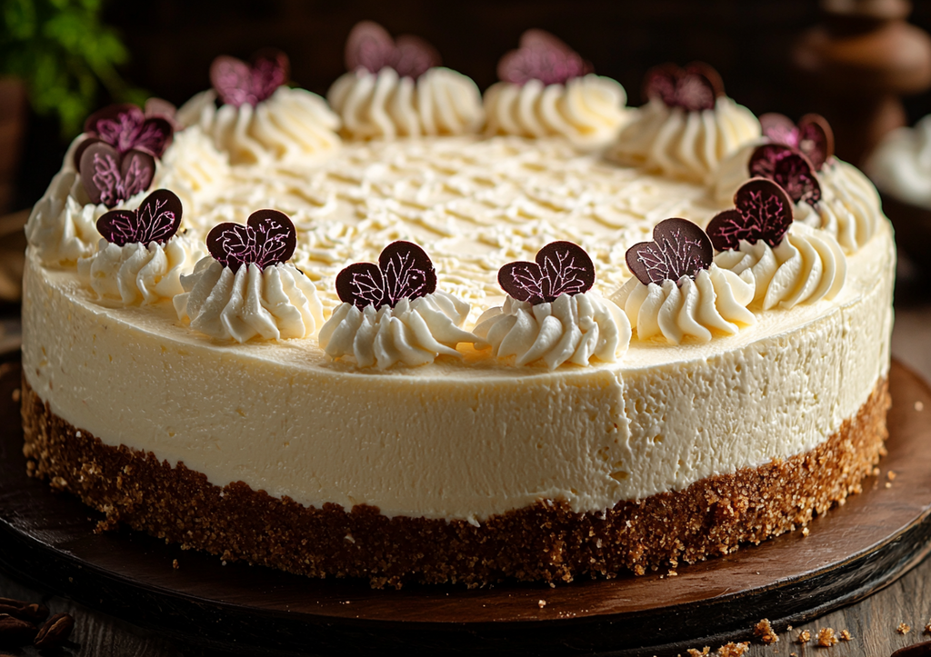 Распределите крем по охлаждённой основе, разровняйте поверхность. Оставьте чизкейк в холодильнике на 4 часа (идеально — на ночь). Перед подачей украсьте сезонными ягодами, карамельными нитями или кокосовой стружкой. Контраст нежного крема, сладкой крошки и сочных топпингов подарит настоящий гастрономический восторг!